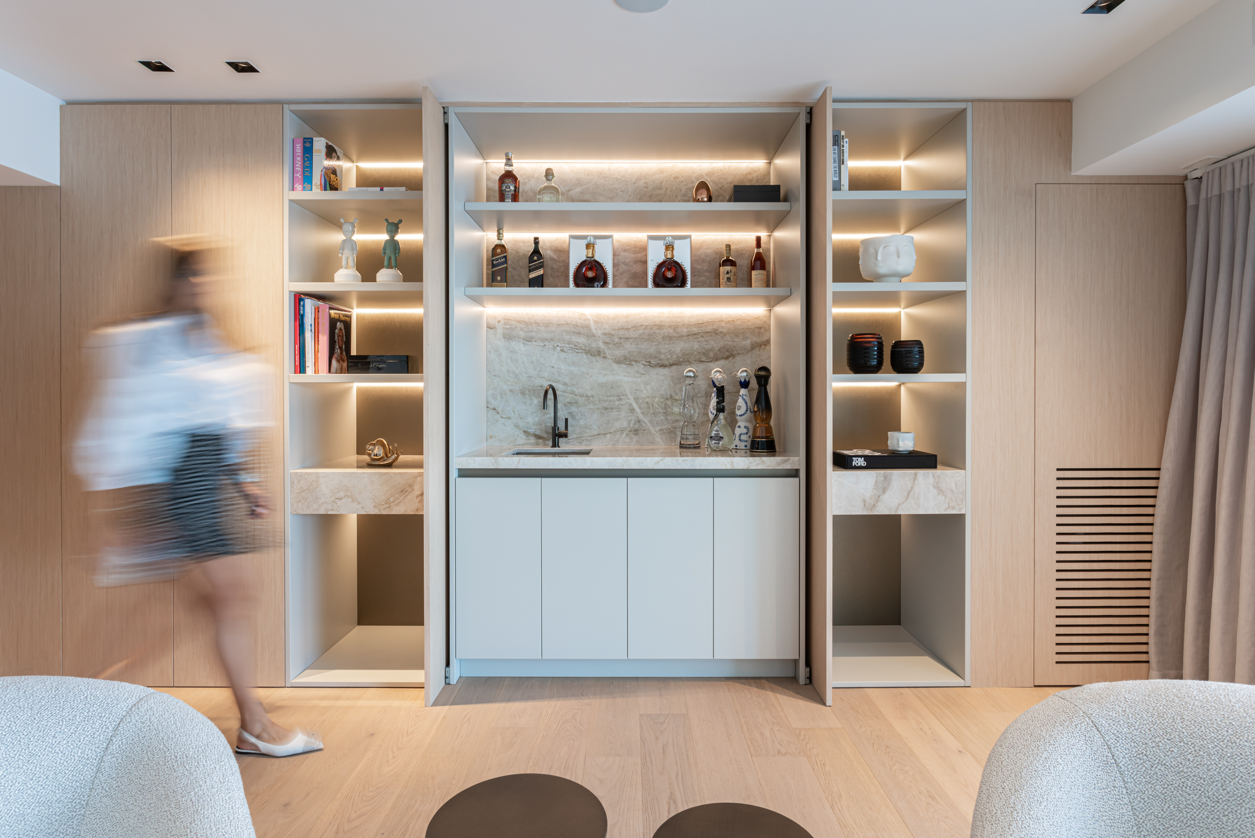 This home embodies contemporary luxury with spacious interiors, sweeping views, and a soft neutral color scheme. Cozy furnishings, modern art work, and thought fully designed lighting contribute to an elegant yet welcoming ambiance.
