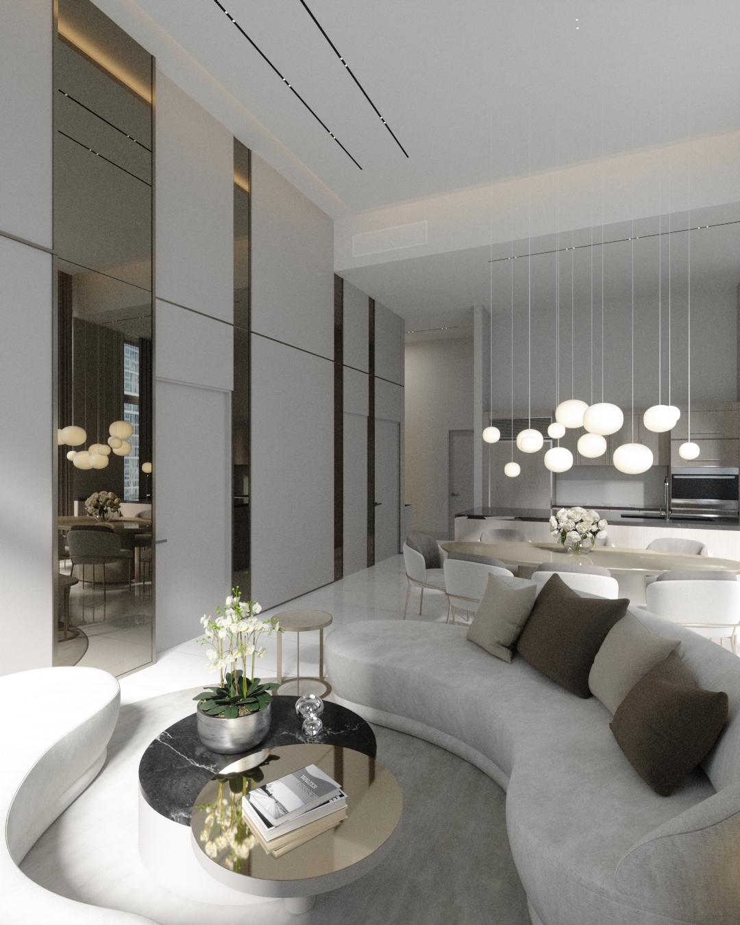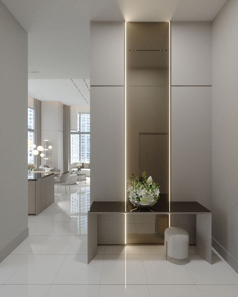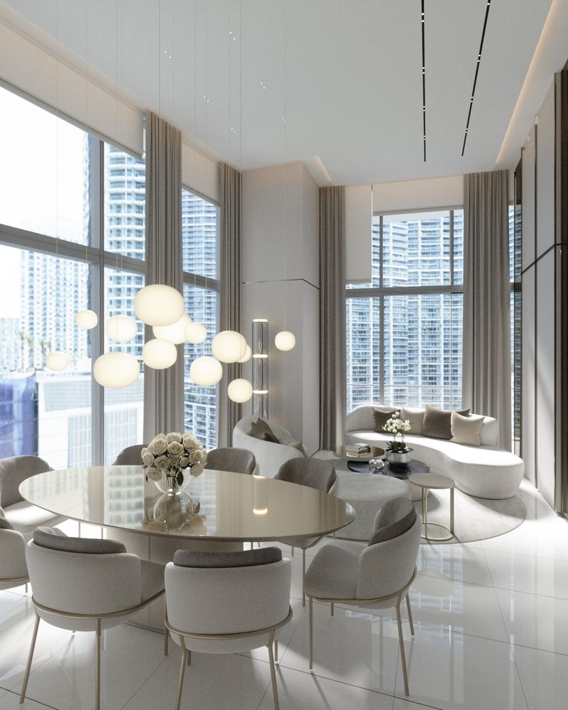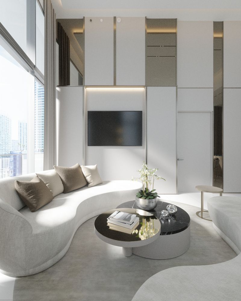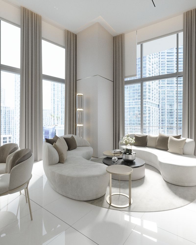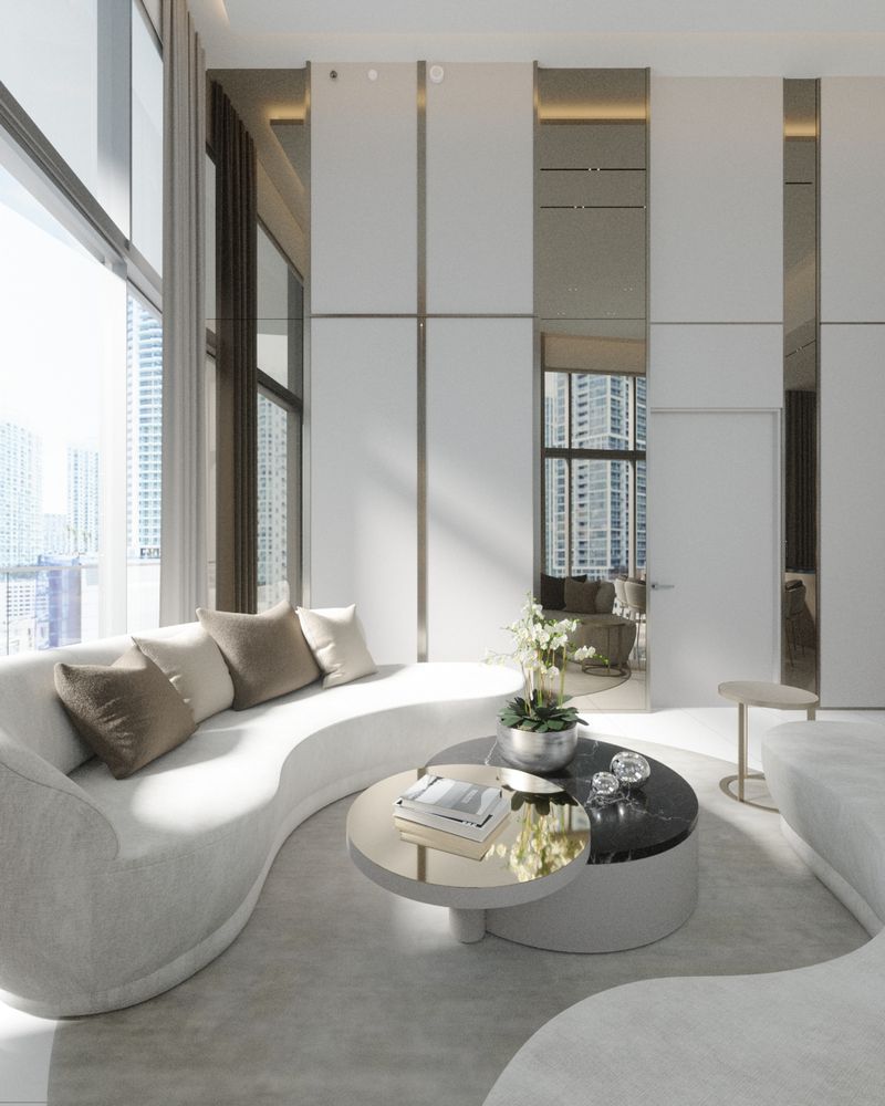 This Brickell apartment combines sleek design and urban elegance. Expansive windows, neutral tones, and curated details create a spacious, refined, and comfortable living space.