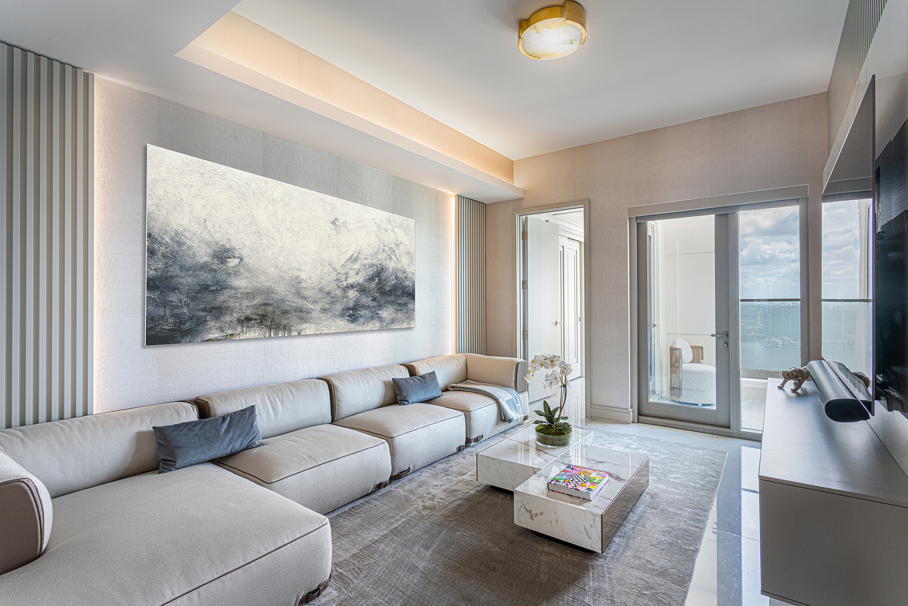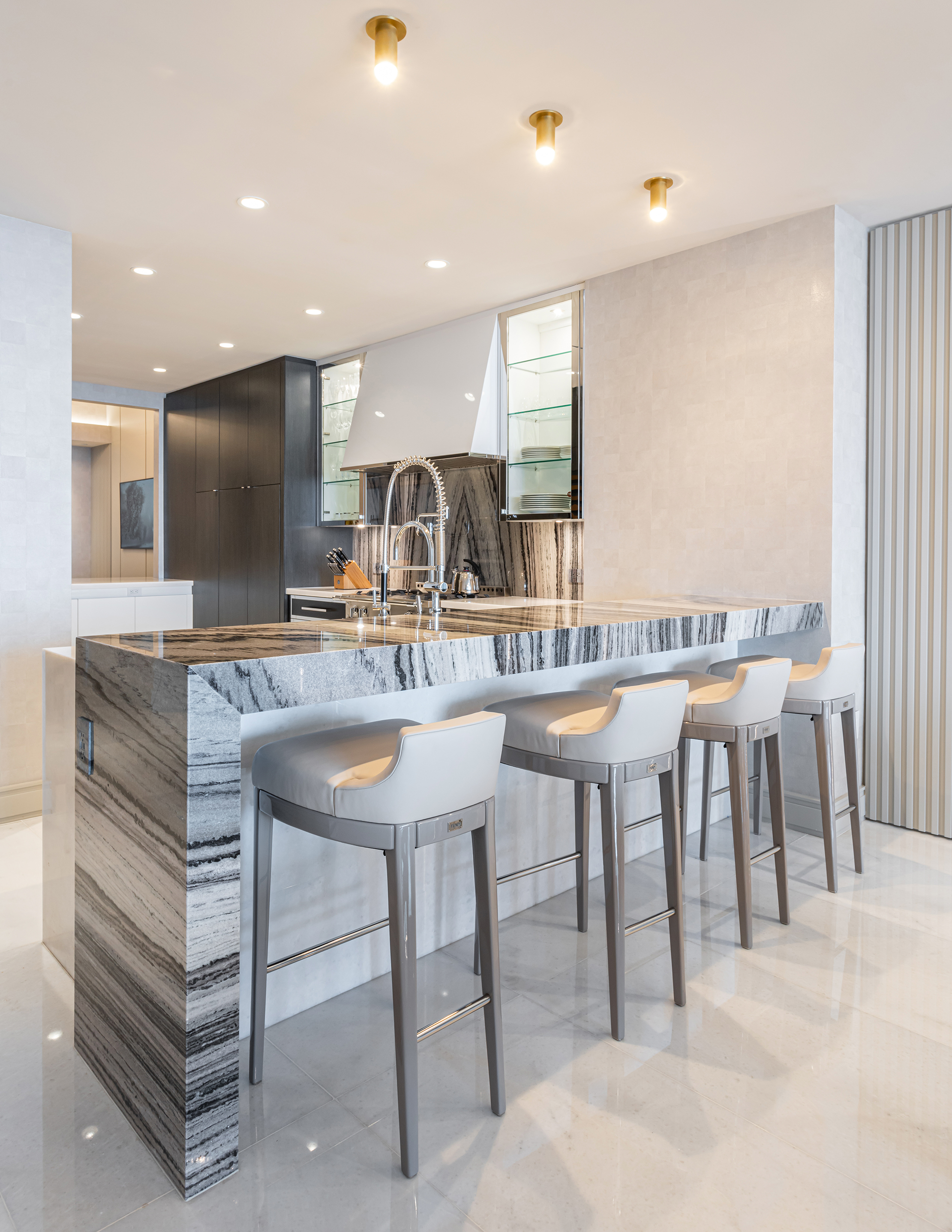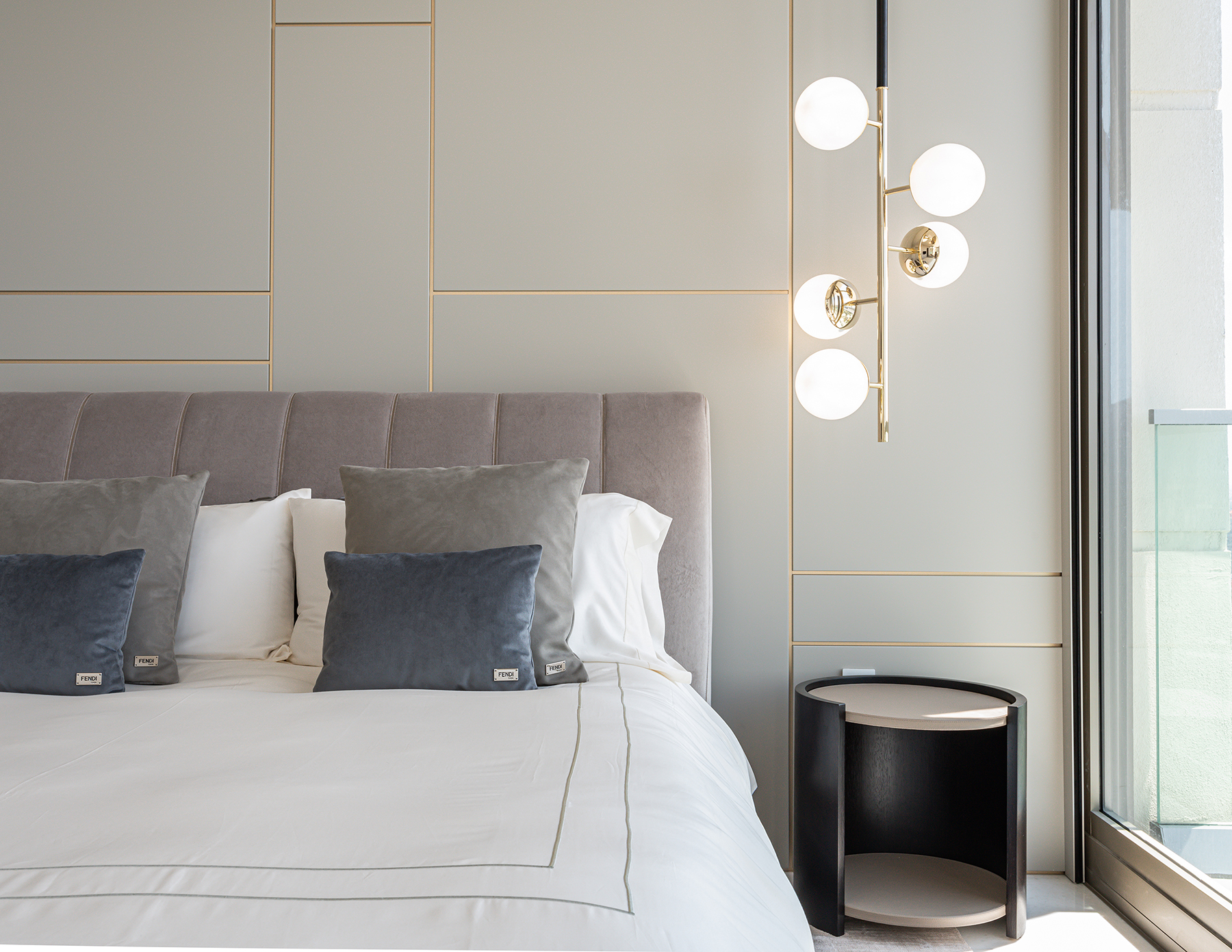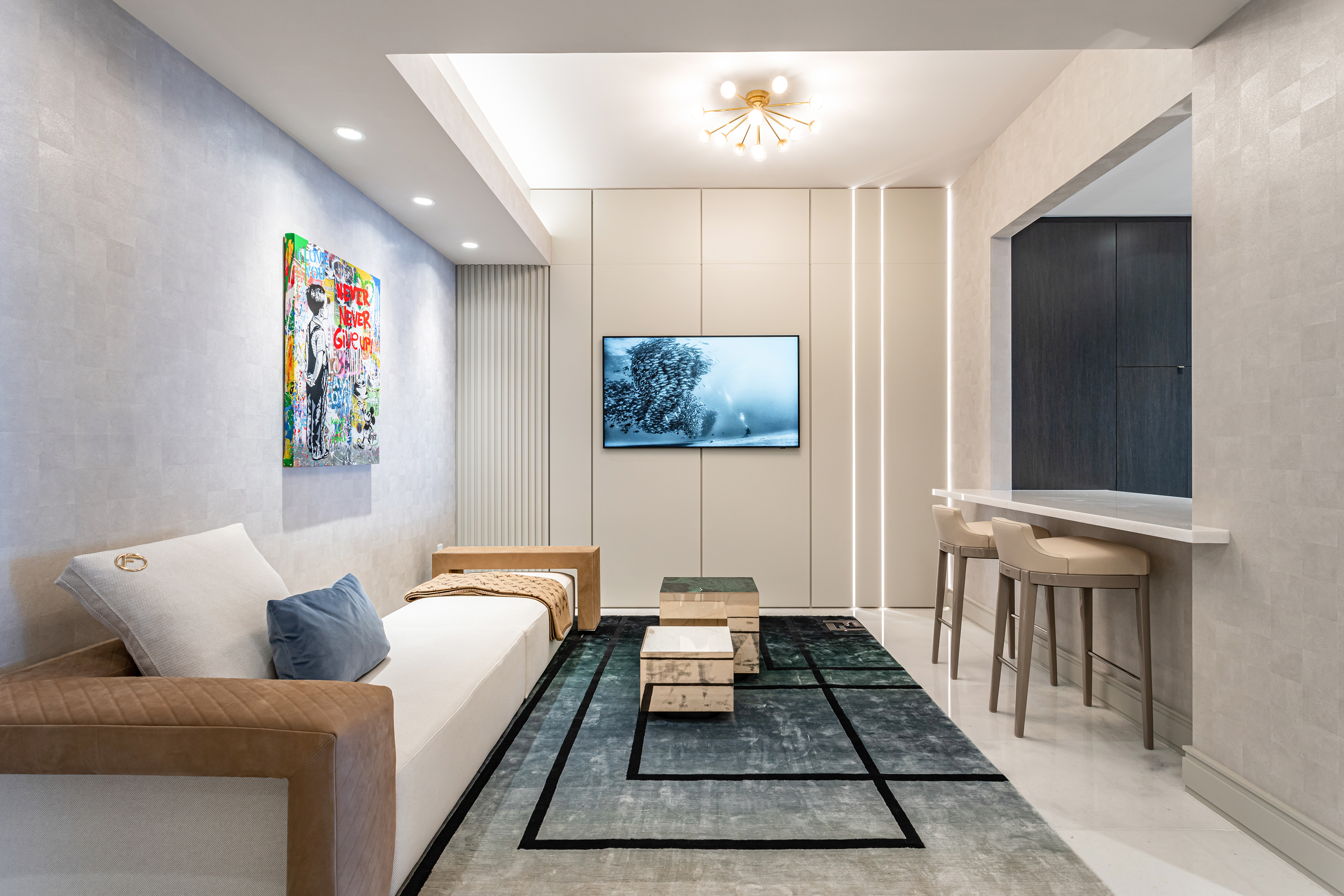 This project embodies sleek contemporary luxury, blending neutral tones with vibrant greens and rich textures. Cohesive and elegant, it harmonizes modern sophistication with functional comfort.